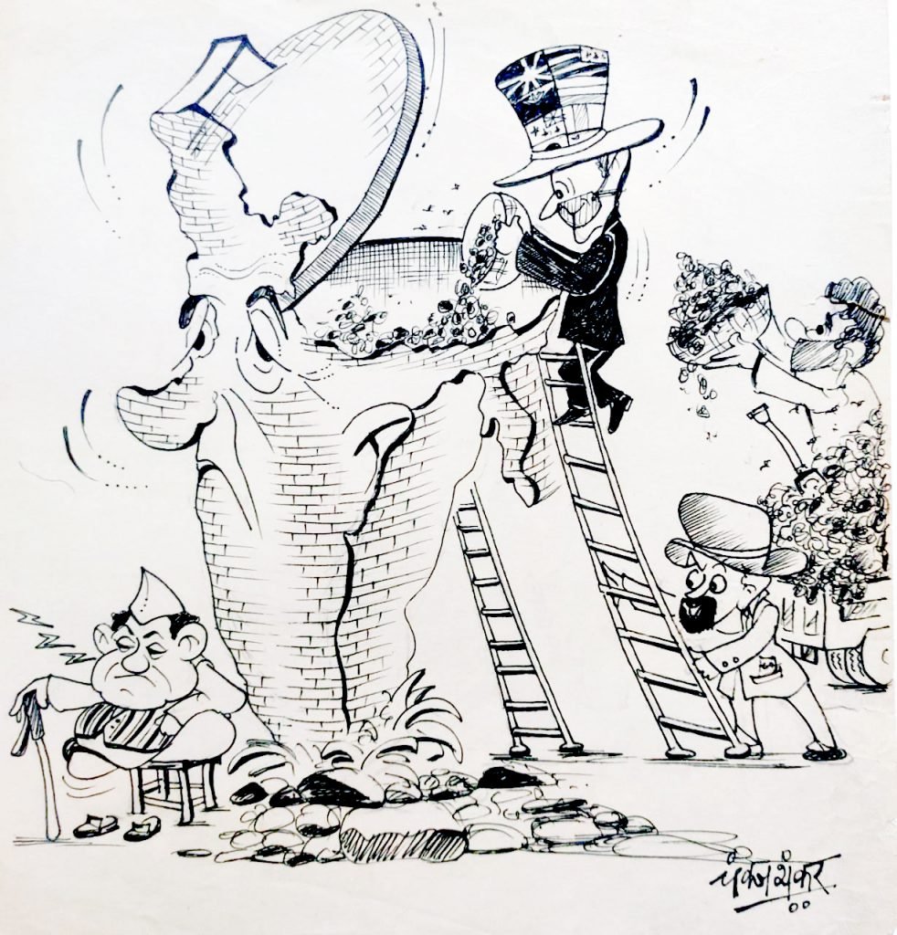 These are some of the cartoons that have appeared in print over the last few decades. In a career that started in early 90s, he has contributed to Midday, Hindustan, Saptahik Hindustan, Mainstream Magazine and others. We will keep adding more of his much acclaimed work as a cartoonist on a regular basis. Please watch this space for more information.
